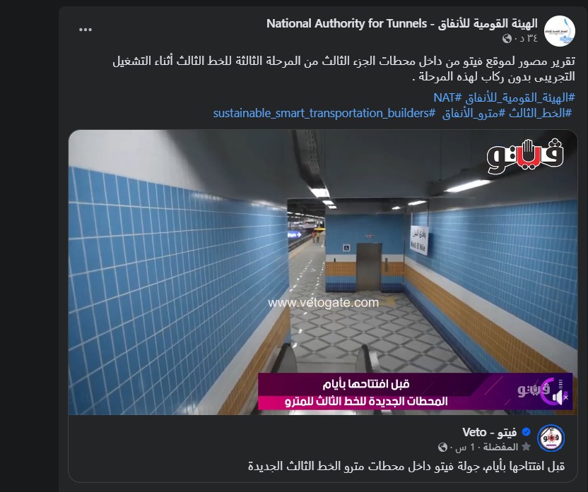 استعرضت الهيئة القومية للأنفاق عبر صفحتها الرسمية على موقع التواصل الاجتماعي فيسبوك التقرير المصور الذي قامت به فيتو داخل محطات الخط الثالث للمترو الجديدة.