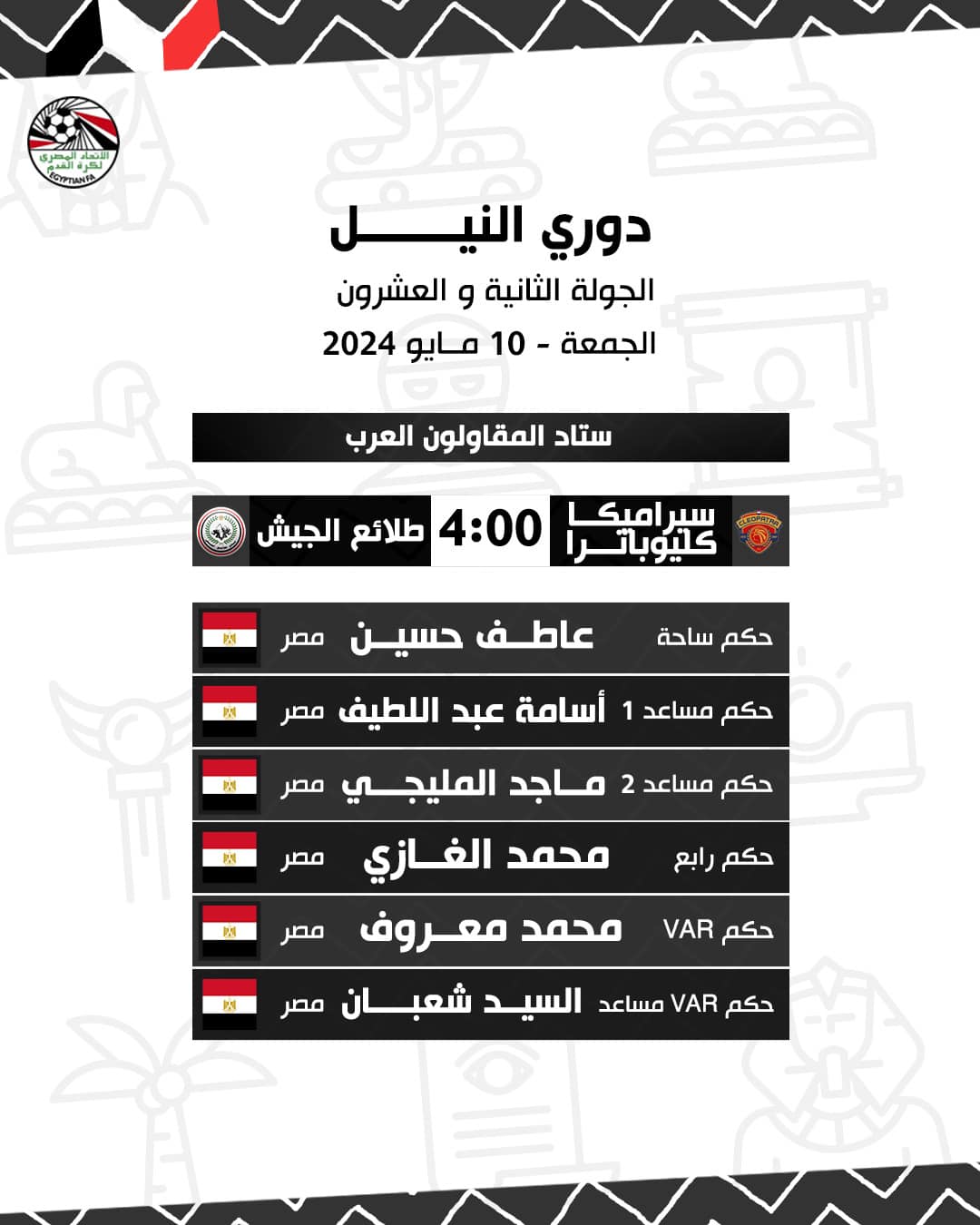 وجاء حكام مباريات الجمعة في الجولة الـ22 من بطولة الدوري المصري كالتالي: