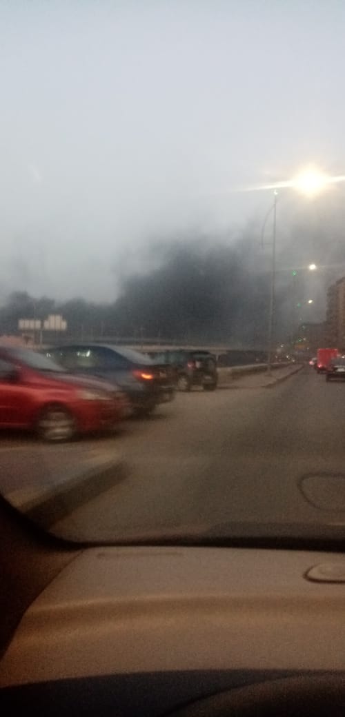بينما سيطرت الأدخنة على منطقة العوايد عقب نشوب الحريق الهائل المتصاعد بداخل الشركة مما تسبب في حالة من الفزع بين المارة بسبب شبورة الأدخنة المتصاعدة.