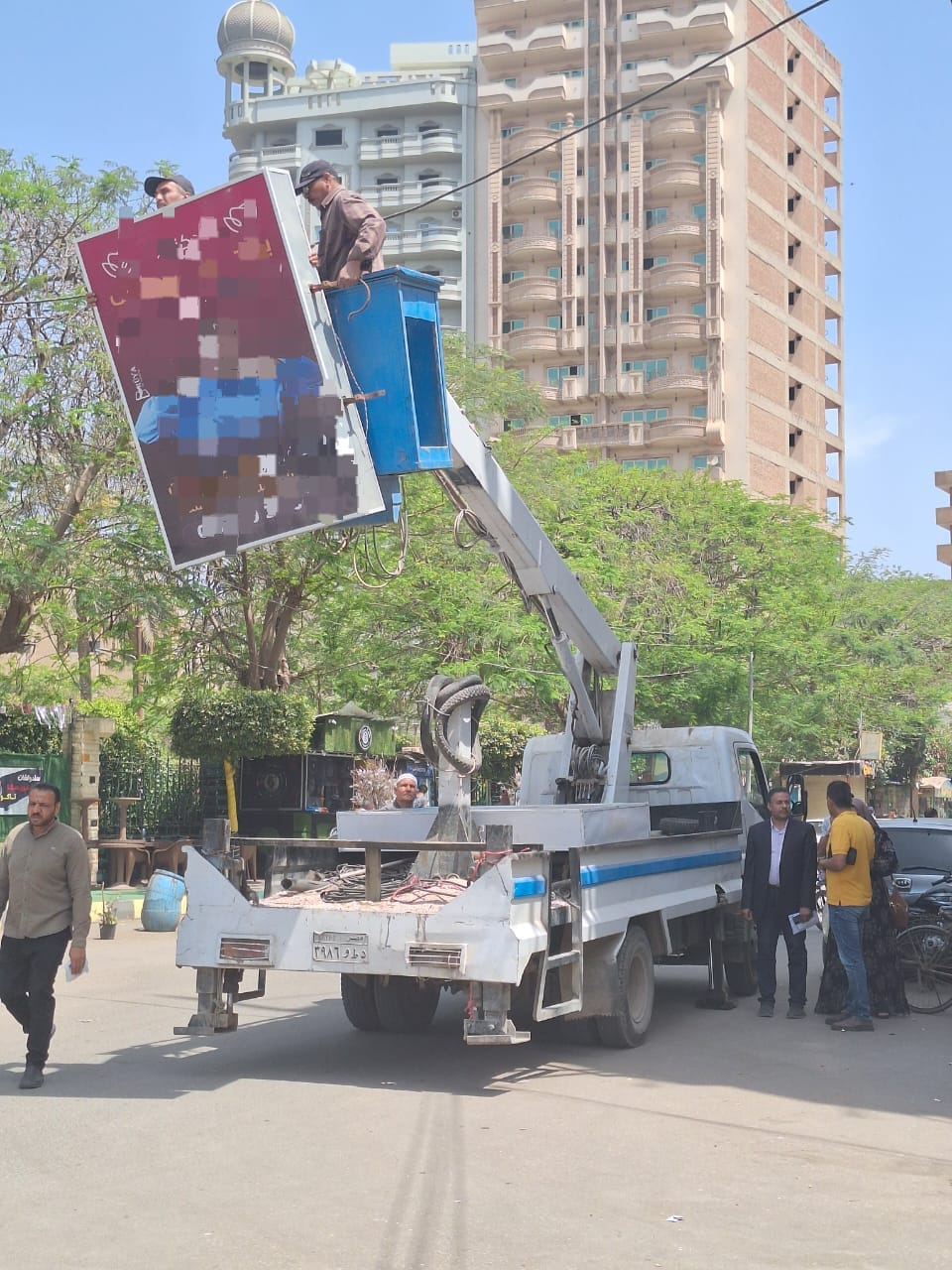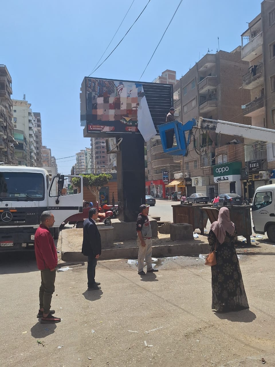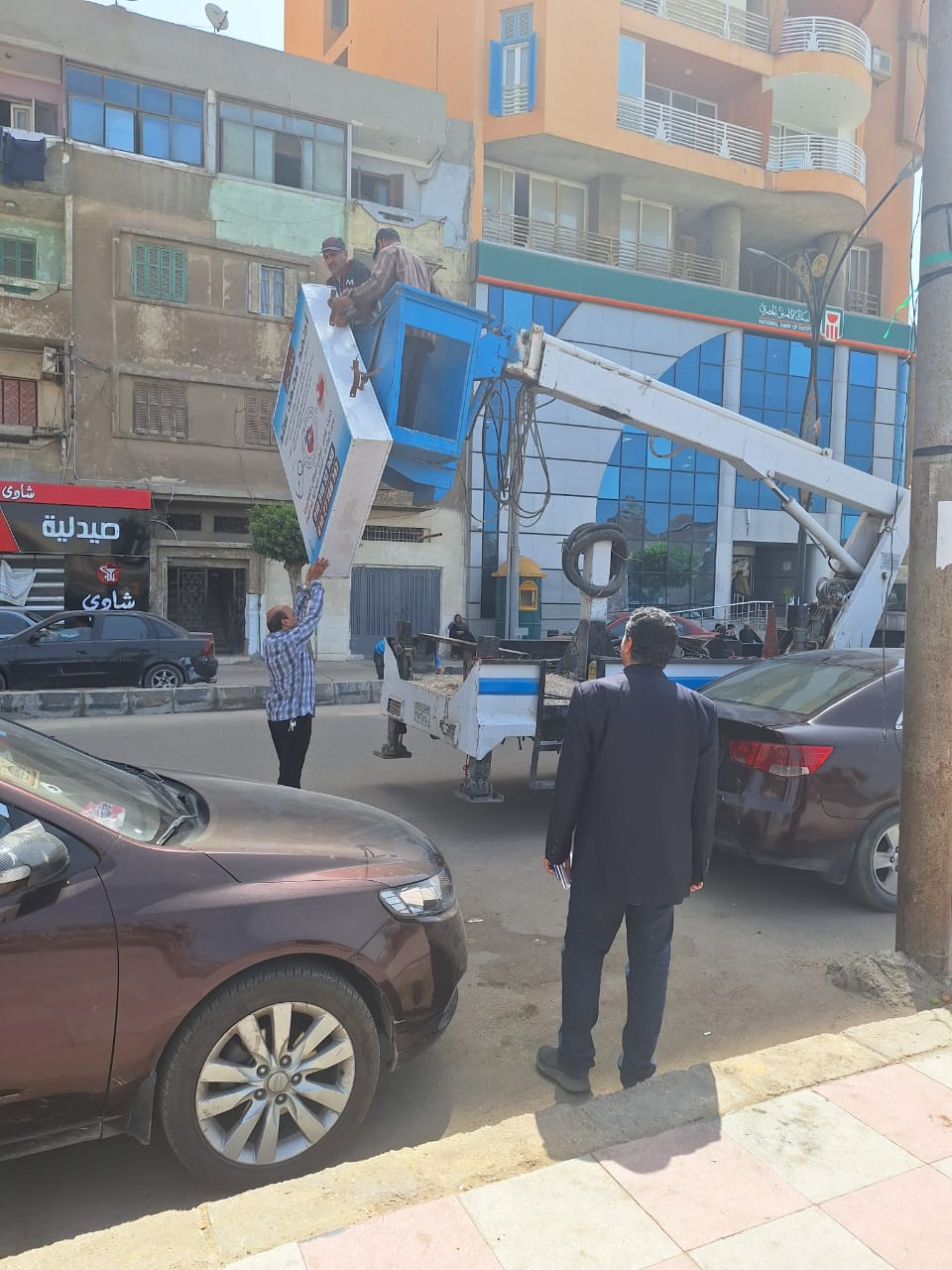 واستمرت أعمال الحملات المكثفة من خلال إدارة الإعلانات بالمحافظة لإزالة الإعلانات المخالفة والغير مرخصة والعشوائية بالتنسيق مع الوحدات المحلية للمراكز والمدن والأحياء بنطاق المحافظة..