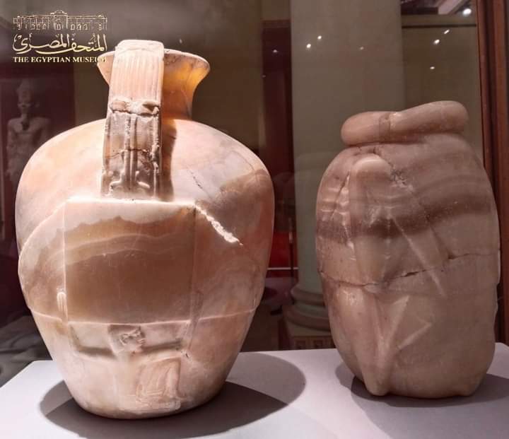 عرض المتحف المصري بالتحرير قطع أثرية فريدة عبارة عن إناء للاحتفالات الملكية للأسرة الثانية عثر عليه في عمليات الحفائر بمنطقة آثار سقارة.