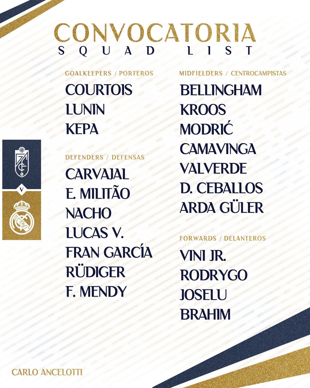 قائمة ريال مدريد الرسمية لمواجهة غرناطة