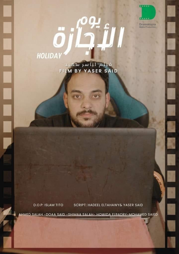 كما يعرض الفيلم الروائي القصير "يوم الاجازة" للمخرج ياسر سعيد، ويناقش الفيلم يوم فى حياة أحد الأشخاص من المفترض أنه يوم أجازة عمل له، ولكنه بالرغم من ذلك يعمل به ويبدأ الفيلم فى توضيح مدى الأعراض الجانبية الإيجابية والسلبية لهذا الشخص.