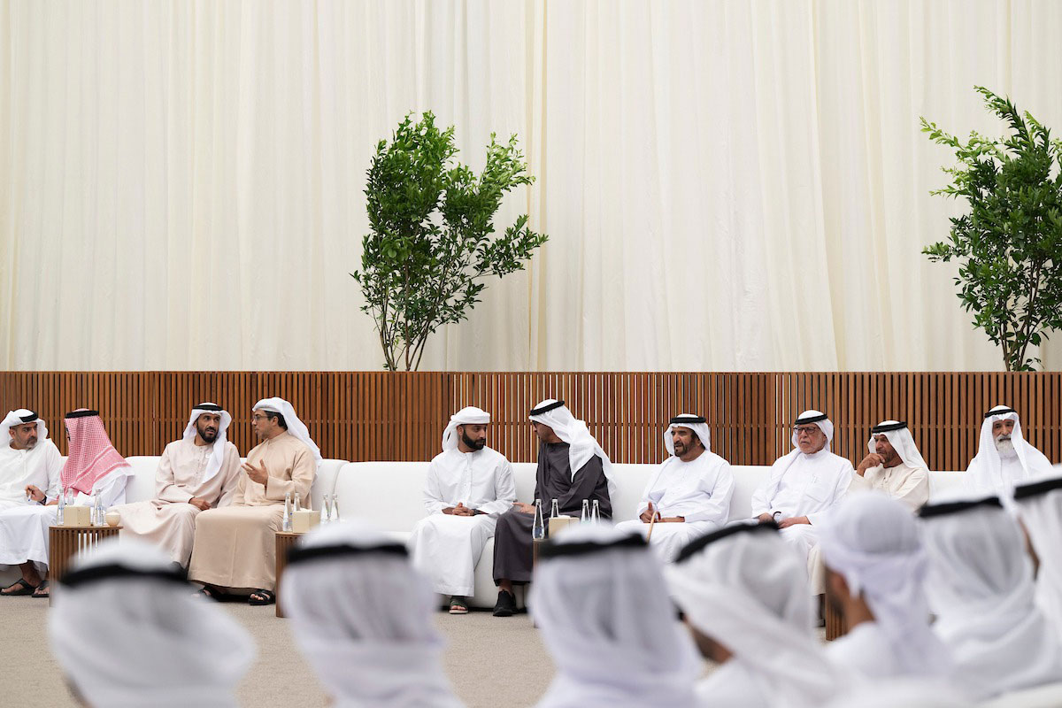 وتقبل التعازي إلى جانب رئيس الإمارات الشيخ محمد بن زايد، كل من الشيخ منصور بن زايد آل نهيان نائب رئيس الدولة؛ نائب رئيس مجلس الوزراء، ورئيس ديوان الرئاسة.