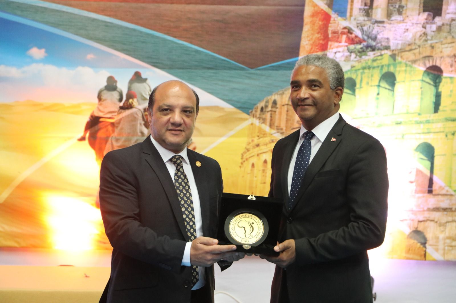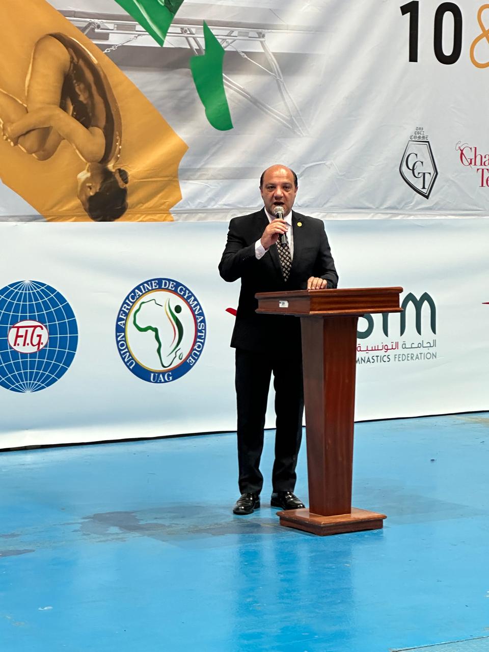 وحرص إيهاب أمين خلال حفل الافتتاح على تسليم درع الاتحاد الأفريقي إلى كل من، والي بن عروس ممثل الرئيس التونسي والدكتور كمال دقيش وزير الشباب والرياضة التونسي، مشيدا باهتمامهم بالجمباز التونسي، وحرصهم على تقديم الدعم المطلوب للاتحاد التونسي للعبة.