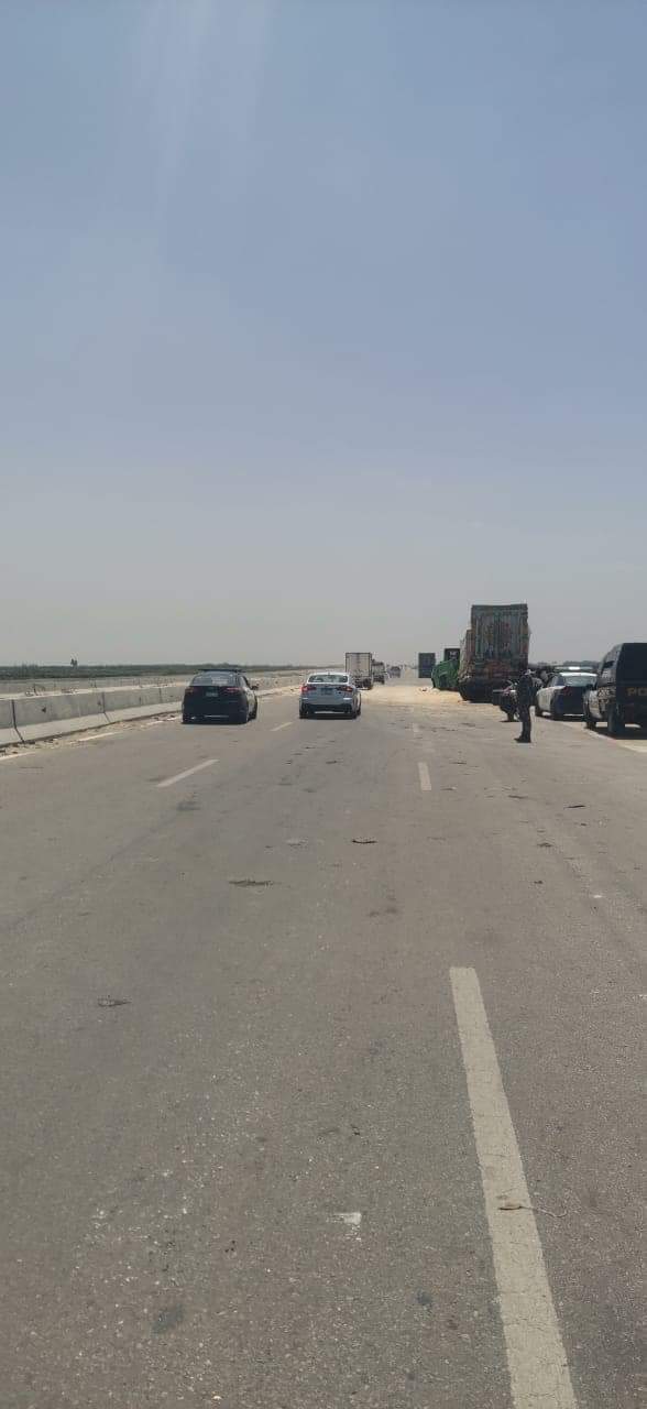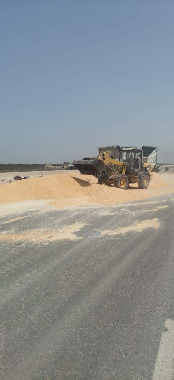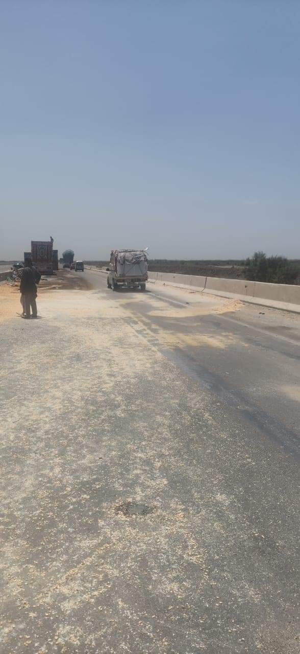 انقلاب سيارة نقل محملة بحبوب الذرة على محور 30 يونيو بالإسماعيلية (صور)