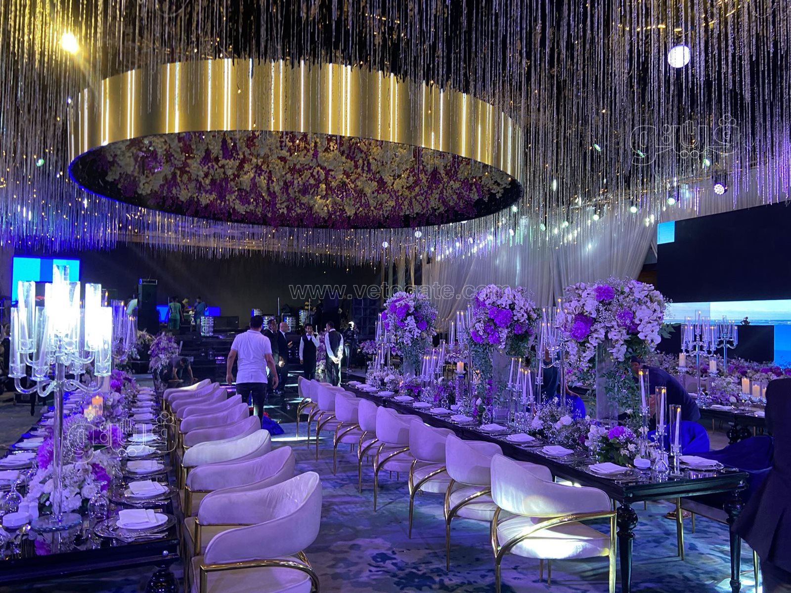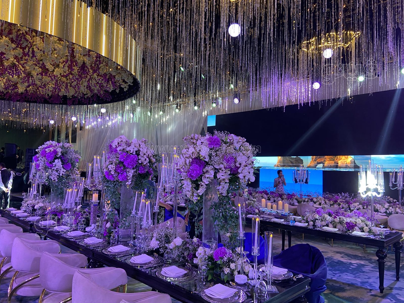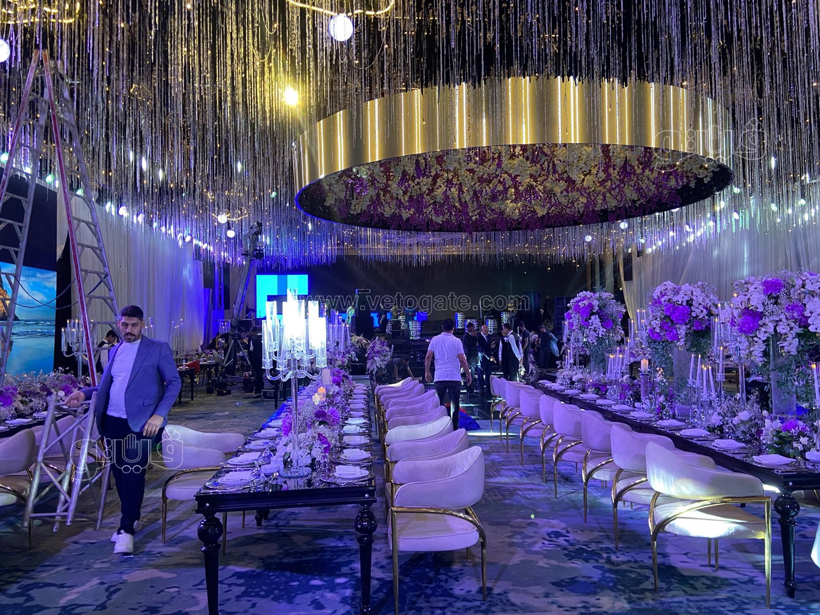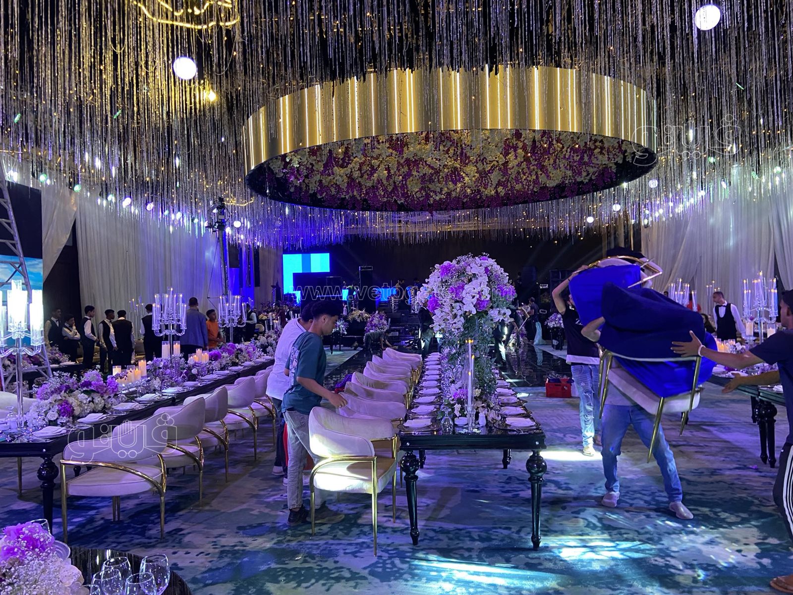 ديكورات وتجهيزات مميزة بقاعة حفل زفاف ابنة مصطفى كامل (صور)