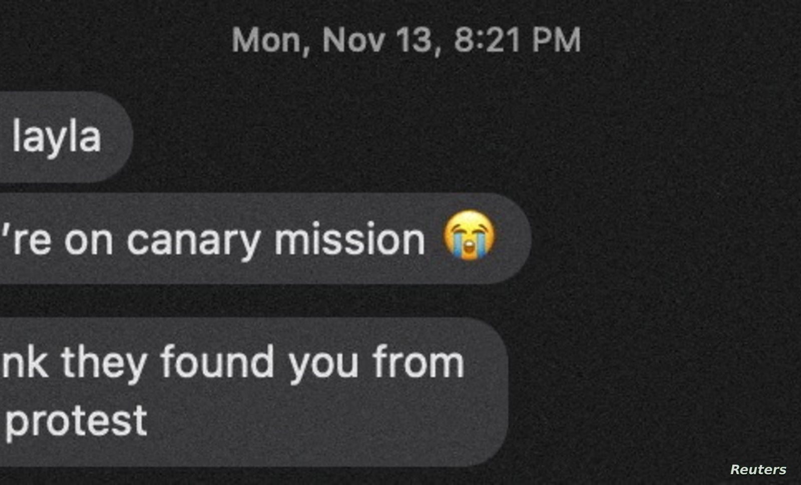 وموقع كناري ميشن واحد من أقدم وأبرز مجموعات الدعم الرقمية التي كثفت حملاتها للكشف عن الأشخاص الذين ينتقدون إسرائيل منذ اندلاع أحدث موجة من الصراع، ما يؤدي غالبا إلى تعرض هؤلاء الأشخاص لمضايقات على غرار ما تعرضت له ليلى.