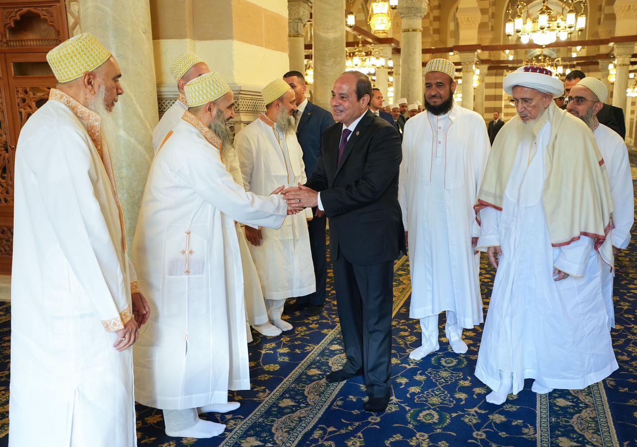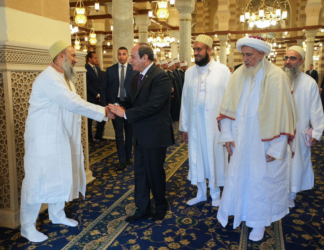 كما تفقد الرئيس السيسي أروقة المسجد كما أدى الرئيس السيسي الصلاة داخل المسجد.