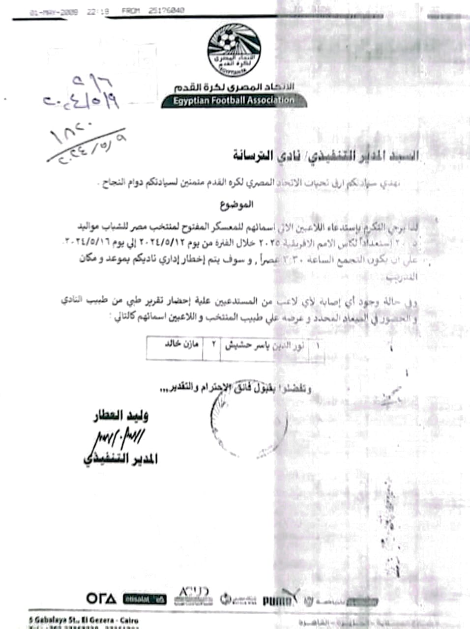 منتخب 2005 يستدعي نور حشيش لاعب الترسانة استعدادا للأمم الإفريقية