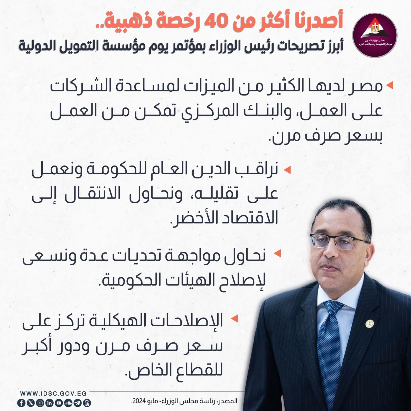سلط مركز المعلومات بمجلس الوزراء الضوء على أبرز تصريحات رئيس الوزراء بمؤتمر يوم مؤسسة التمويل الدولية.