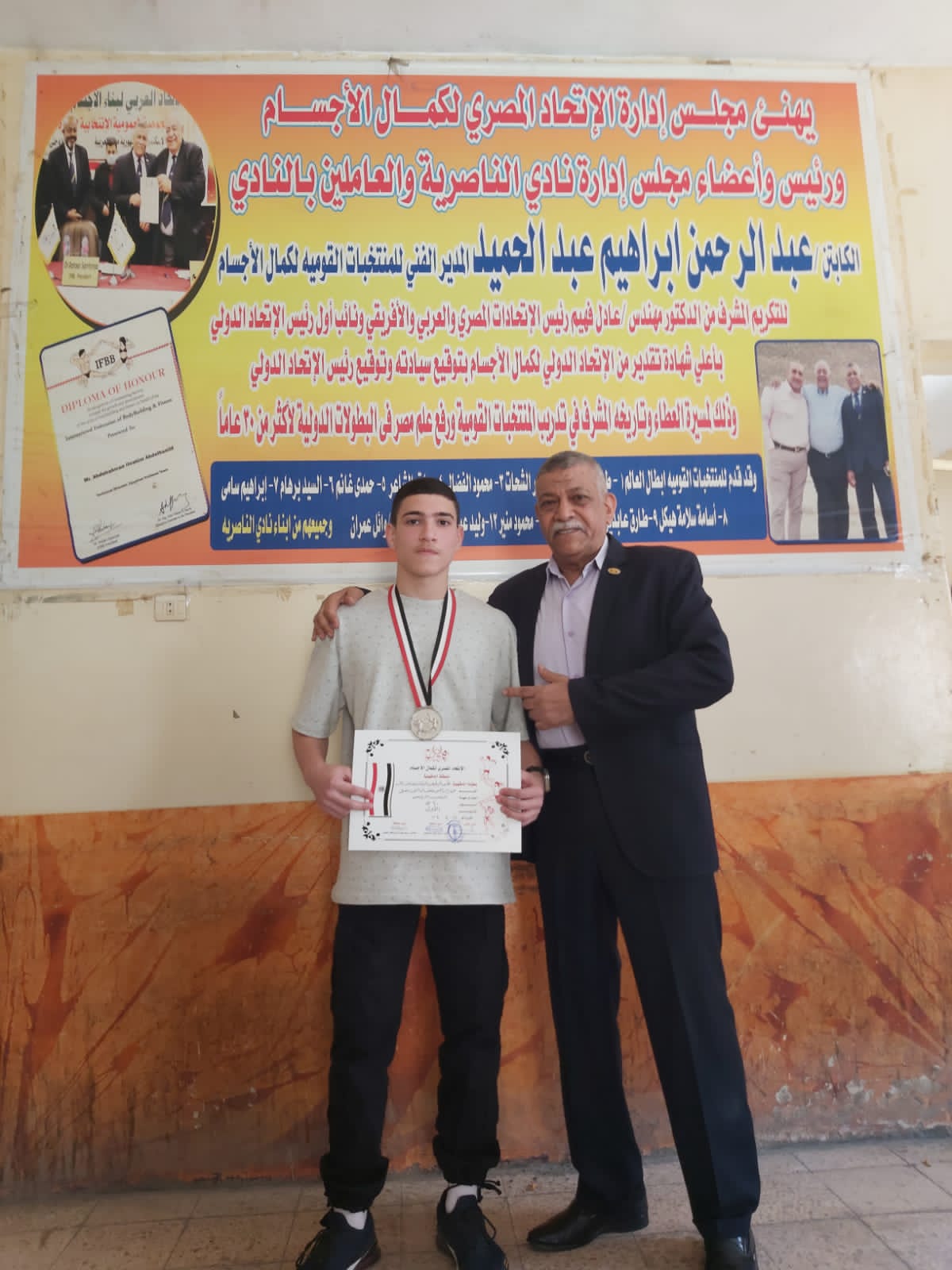 كما وجه الشكر لـ الإتحاد المصري لـ كمال الاجسام بقيادة الدكتور عادل فهيم رئيس الاتحاد المصري والعربي والافريقي والنائب الأول لرئيس الاتحاد الدولي ومدير المكتب التنفيذي على ما يقدمه من دعم للاعبين.