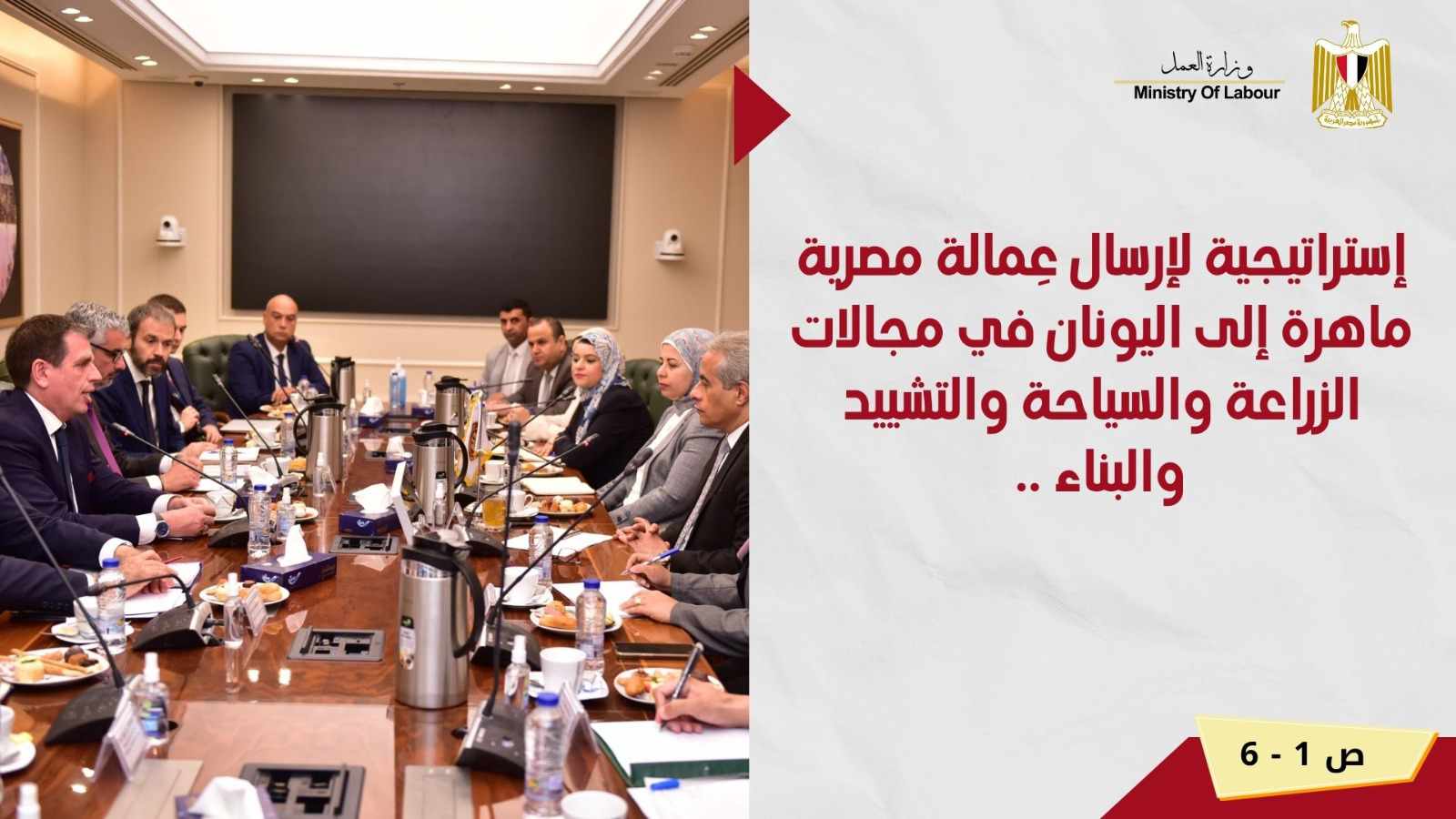 والإتفاق على إستراتيجية عمل خلال الفترة المُقبلة لإرسال عمالة مصرية ماهرة،ومُدربة إلى دولة اليونان،وتفعيل كافة أشكال التعاون والإتفاقيات،والبروتوكولات الخاصة بتنقل الأيدي العاملة المصرية إلى اليونان.