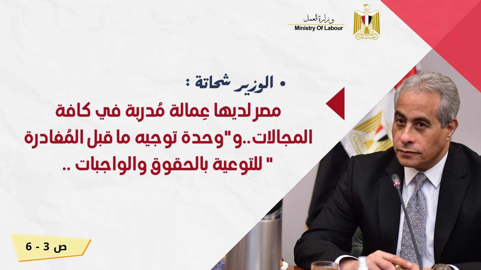 ويرصد "الانفوجراف" توضيح وزير العمل حسن شحاتة أن وزارة العمل كجهة منوط بها التعاون في تنقل الأيدي العاملة،وتوعيتها بحقوقها وواجباتها من خلال "وحدة توجيه ما قبل المُغادرة " التابعة للوزارة،لديها كل مُقومات التدريب المهني،حيث تمتلك 83 مركز تدريب مهني ثابت ومُتنقل في جميع انحاء الجمهورية،وكذلك أطلقت في يناير الماضي مشروع "مهني 2030"،بالتعاون مع القطاع الخاص،لتأهيل الشباب على المهن التي يحتاجها سوق العمل في الداخل والخارج،مُشددًا على أن مصر لديها العمالة الماهرة والمُدربة لسوق العمل الخارجي،وجاهزة من الأن لكافة الطلبيات الخاصة بهذا الشأن،وفي كل المجالات..وإتفاق الجانبان على تفعيل قنوات الإتصال،وتبادل الخبرات، لإنجاز كافة الإجراءات المُتفق عليها..