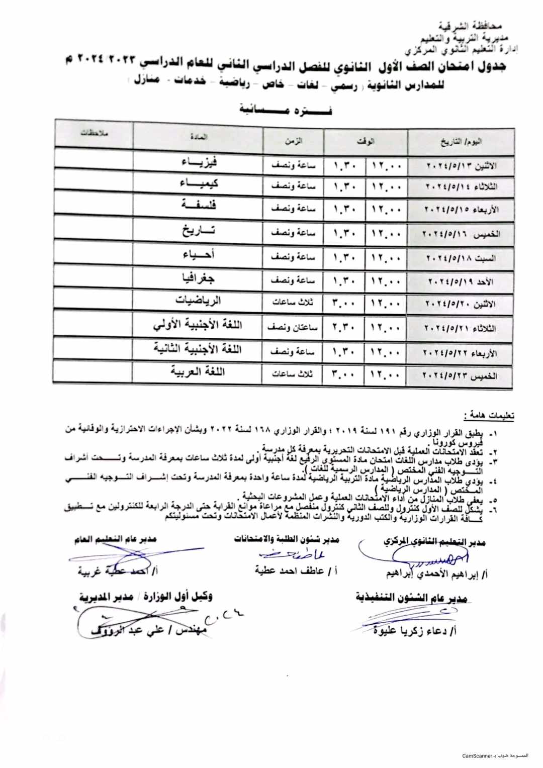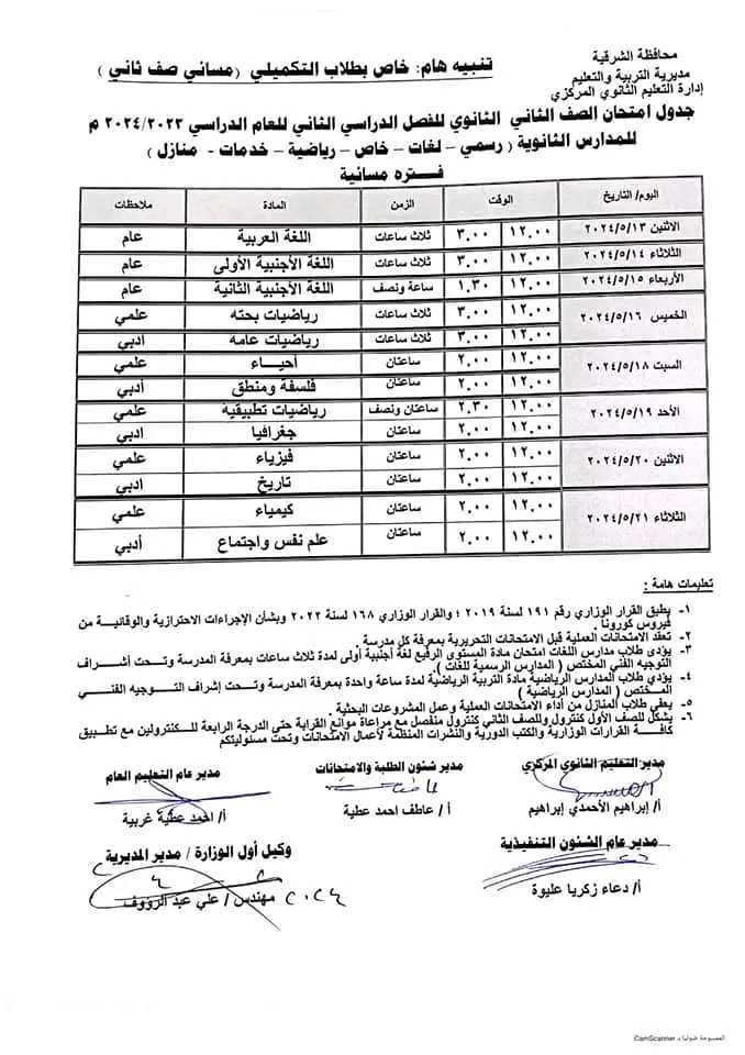 ونبهت مديرية التربية والتعليم بالشرقية على جميع طلاب الصفين الأول والثاني الثانوي قبل امتحانات الفصل الدراسي الثاني 2024 بالتالي: