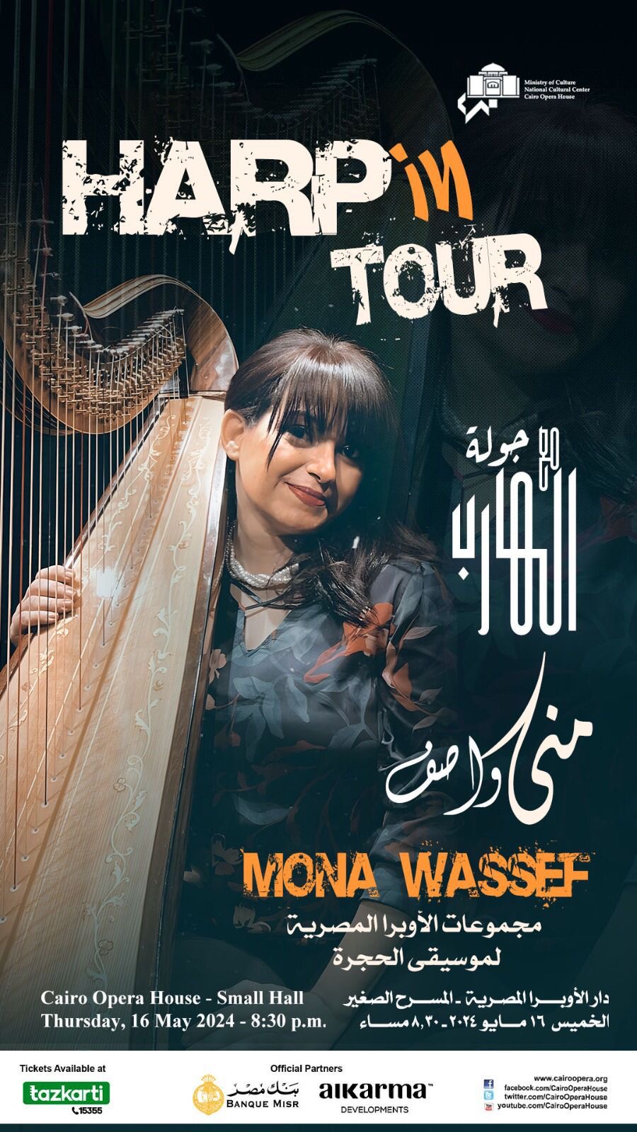 تقدم دار الأوبرا المصرية برئاسة الدكتورة لمياء زايد، حفلا بعنوان “جولة مع الهارب” للعازفة منى واصف، ومجموعات الأوبرا لموسيقي الحجرة، وذلك في تمام الثامنة والنصف من مساء الخميس المقبل الموافق 16 مايو الجاري على المسرح الصغير بالأوبرا.