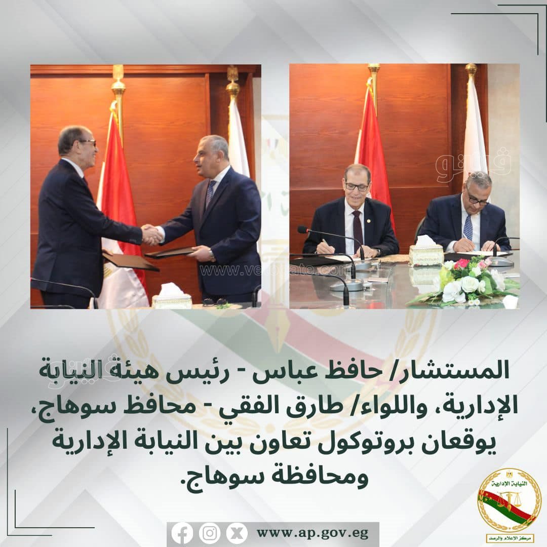 وجرى توقيع بروتوكول تعاون بين النيابة الإدارية ومحافظة "سٌوهاج" يستهدف تعزيز أوجه التعاون بين الطرفين، ويتولى بمقتضاه مركز التدريب القضائي بالنيابة الإدارية، تدريب العاملين بالجهاز الإداري بالمحافظة في كافة جوانب الوظيفة العامة ومكافحة الفساد، وعقب انتهاء مراسم التوقيع، قام الطرفان بتبادل الدروع التذكارية.