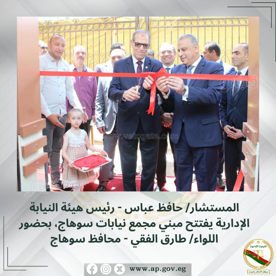 افتتح المستشار حافظ عباس رئيس هيئة النيابة الإدارية، يرافقه اللواء طارق الفقي محافظ "سٌوهاج"، اليوم الإثنين، مبنى مجمع النيابات الإدارية بمدينة "سٌوهاج"، وتدشين منظومة التحول الرقمي.