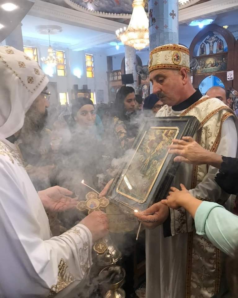الأنبا أكسيوس يطيب رفات القديس مارجرجس بإيبارشية المنصورة