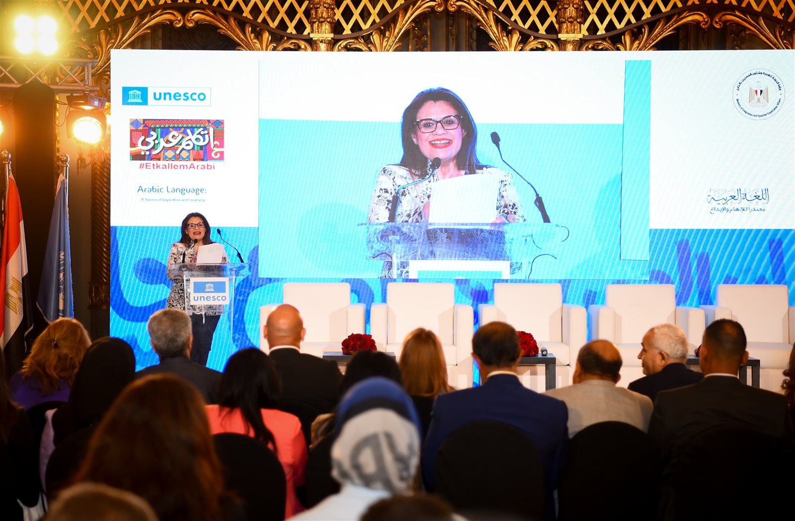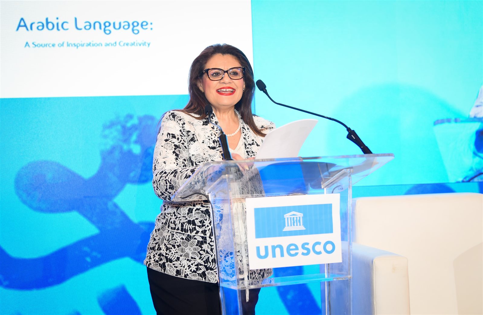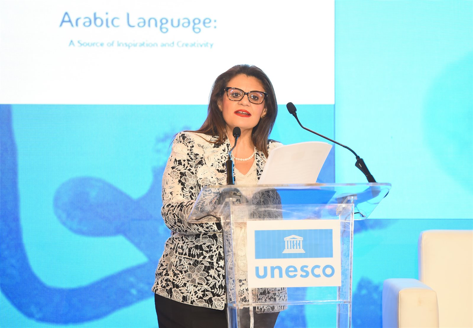 وأشارت إلى احتفال وزارة الهجرة مع اليونسكو في ديسمبر الماضى بالتعاون مع وزارة الثقافة باليوم العالمي للغة العربية في ذكرى مرور خمسين عامًا على الاعتراف باللغة العربية كواحدة من لغات الأمم المتحدة الست الرسمية، فهي واحدة من أكثر خمس لغات تحدثًا في العالم فهي اللغة التي يتحدث بها أكثر من 400 مليون شخص حول العالم وهي اللغة الرسمية لـ 22 دولة أعضاء في جامعة الدول العربية، وهي أيضًا واحدة من لغات الأمم المتحدة الست، فضلا عن أنها واحدة من لغات الاتحاد الأفريقي وأحد أغنى لغات العالم، فقد وصل عدد مفرداتها دون تكرار إلى ما يزيد على 12 مليون كلمة. فاللغة العربية لغة غنية وملهمة ولذلك ركز شعوبها على إظهار إبداعاتهم في مجالات الثقافة والأدب والفنون، كان من بينهم كوكبة من الأدباء والمبدعين المصريين مثل نجيب محفوظ، وتوفيق الحكيم، وطه حسين، وعباس العقاد، ومصطفى صادق الرافعي.