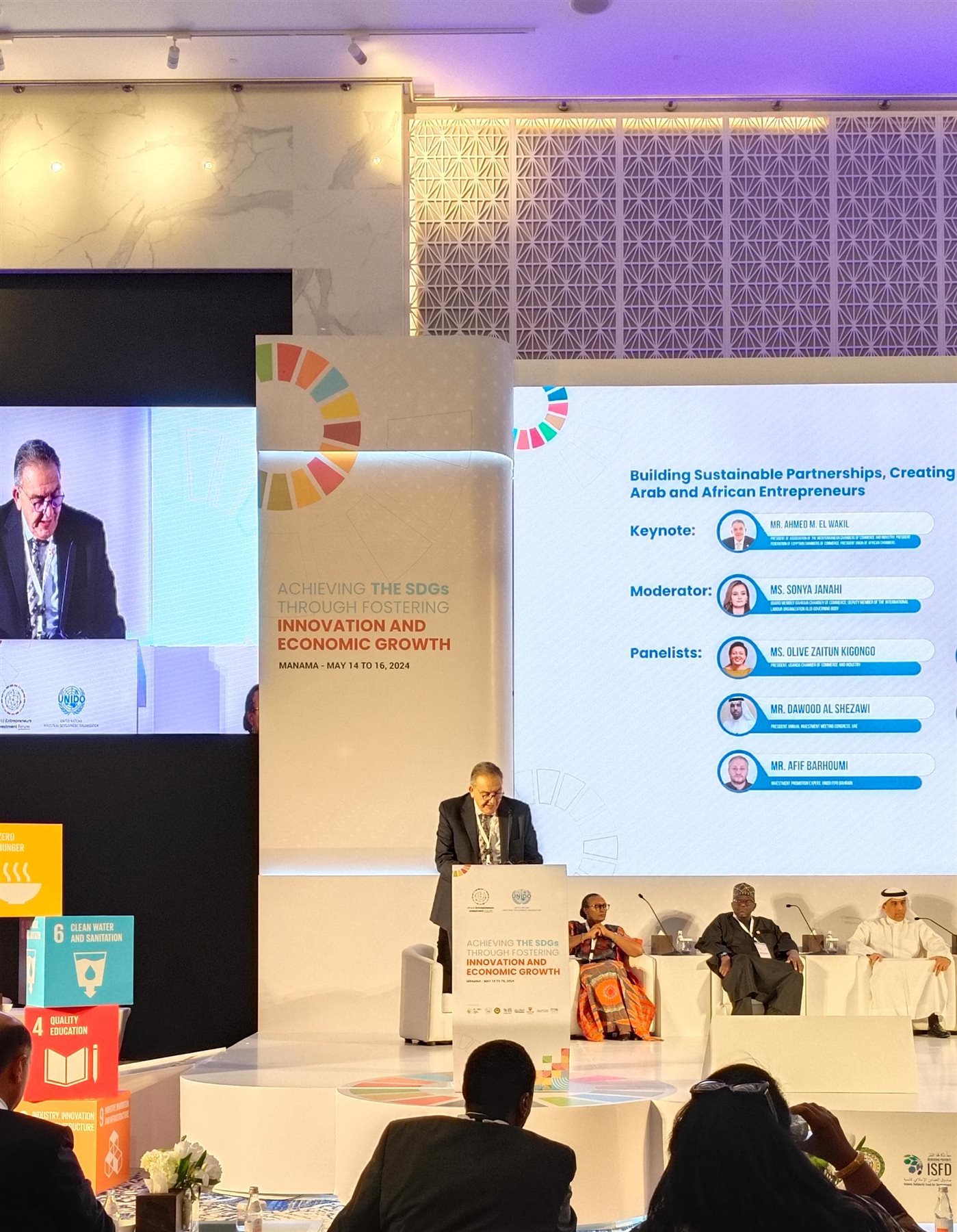 وقال «الوكيل» خلال كلمته التي ألقاها في فعاليات المؤتمر العربي الأفريقي البحرين 2024، اليوم الثلاثاء: «لقد بادر اتحادنا منذ إنشائه إلى مد جسور التعاون مع جميع البلدان والتكتلات فى العالم، ولقد سعينا لمد تلك الجسور مع مختلف التكتلات الاقتصادية ونجحنا فى إنشاء العديد من الغرف مع القارة الأفريقية، مثل الغرفة الإفريقية الصينية، والغرفة الإفريقية الكورية، والإفريقية اليابانية بحضور الرئيس عبد الفتاح السيسى،».