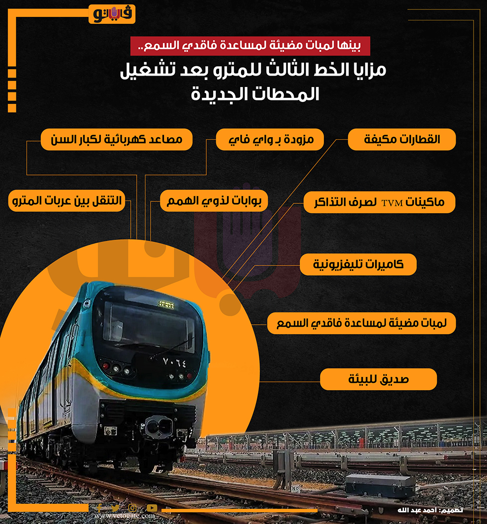 - تمتع القطارات بالخط الثالث لمترو الأنفاق بنظام تكييف هواء عالي السعة.