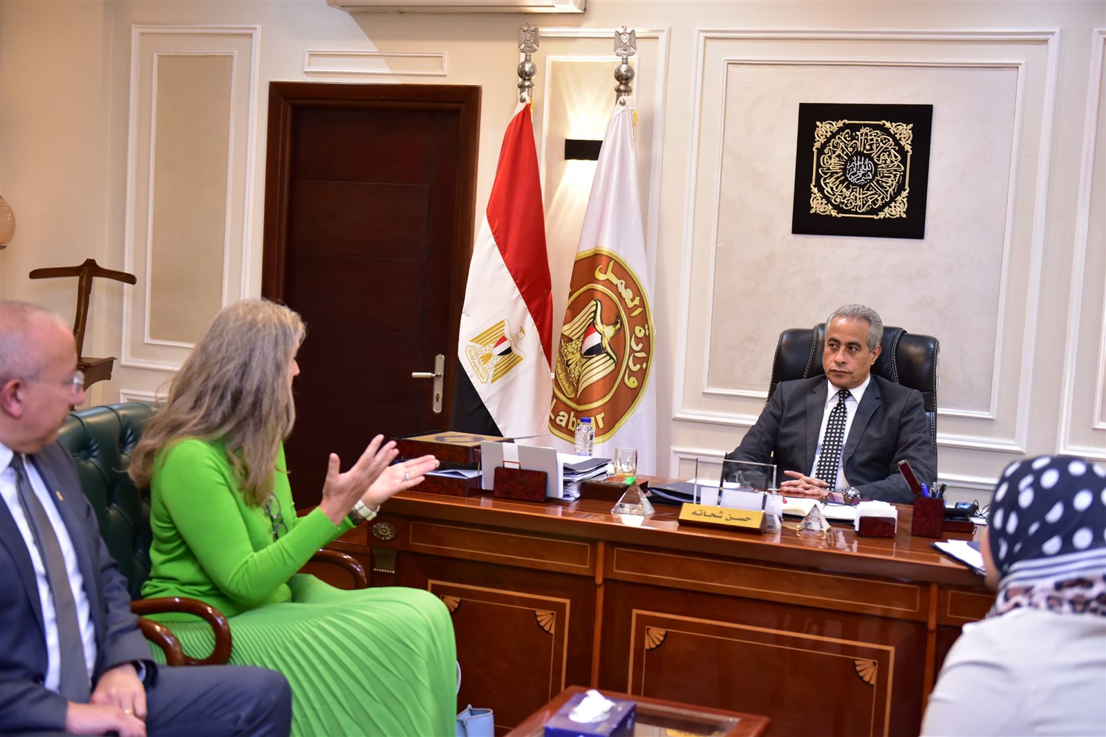 التقى حسن شحاتة وزير العمل، اليوم الثلاثاء، بديوان عام الوزارة، بيتينا شالر، رئيس الاتحاد العالمي للتوظيف، والوفد المُرافق لها، لبحث أوجه التعاون في المجالات المُشتركة.