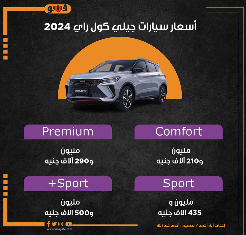 أسعار سيارات جيلي كول راي 2024 (إنفوجراف) الخميس 27/يونيو/2024 - 12:41 م 6/27/2024 12:41:46 PM سيارات آية أحمد شارك طباعة 18 حجم الخط شارك طباعة جيلي كول راي جيلي Premium