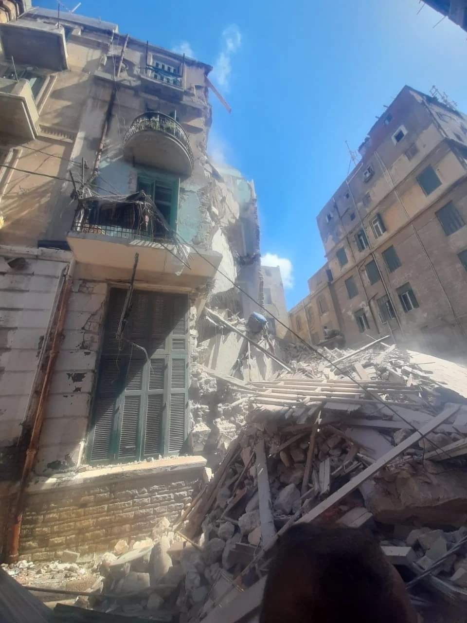 انهيار عقار العطارين وسط محافظة الإسكندرية.