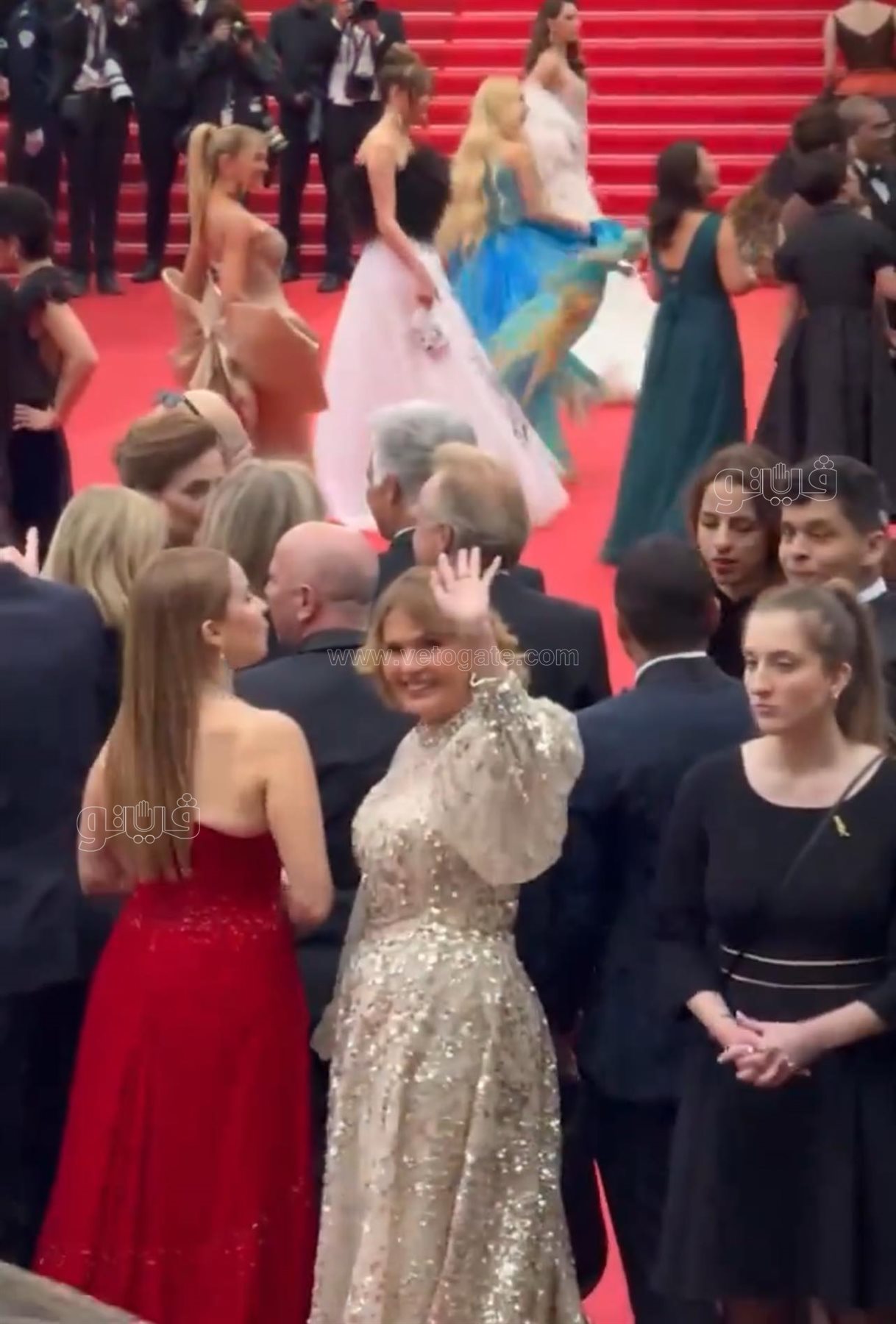 وخطفت الفنانة يسرا الأنظار علي السجادة الحمراء لمهرجان كان السينمائي في دورته الـ 77 ، حيث أرتدت فستانا أبيض جذابا، بينما ارتدت ريا أبو راشد فستانا أحمر أنيقا.