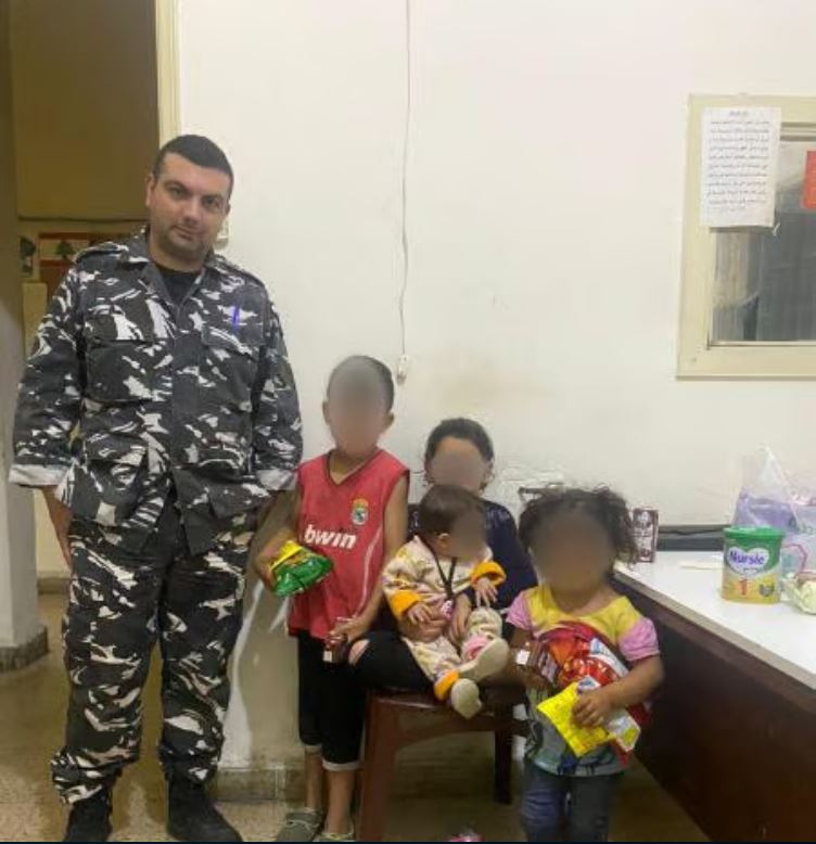 الأطفال مع أحد أفراد الدرك اللبناني وبعد التحقيق، تبيّن أن الأب هو من قام برميهم في الشارع، وذلك بسبب خلافٍ دار بينه وبين والدتهم، الّتي أكدت أنها لم تعد ترغب بإعالتهم.