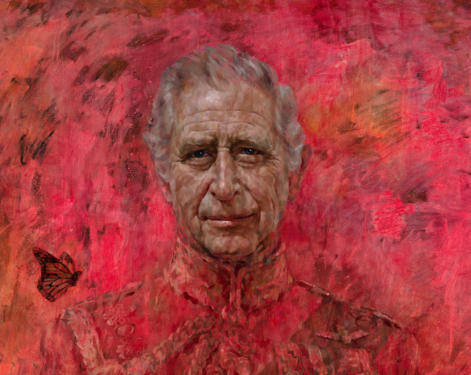 وذكرت وسائل إعلام بريطانية أن اللوحة رسمها الفنان جوناثان يو، والتي تصور تشارلز أمام خلفية من الألوان الحمراء الزاهية وهو يرتدي الزي الرسمي للوحدة العسكرية لحرس ويلز مع فراشة فوق كتفه مباشرة.