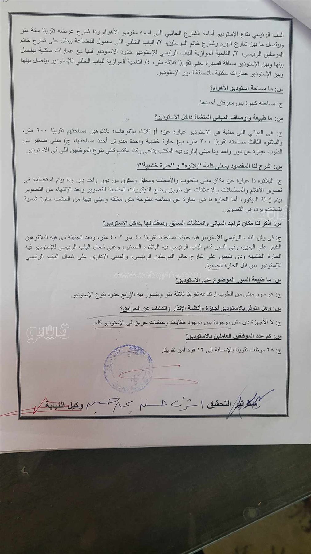 تفاصيل مثيرة في أقوال مدير استديو الأهرام بحادث حريق اللوكيشن (مستند)