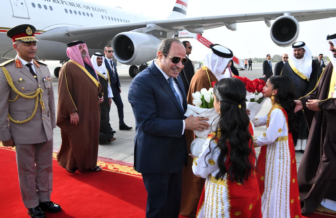 9 صور ترصد وصول السيسي إلى البحرين للمشاركة بالقمة العربية 33