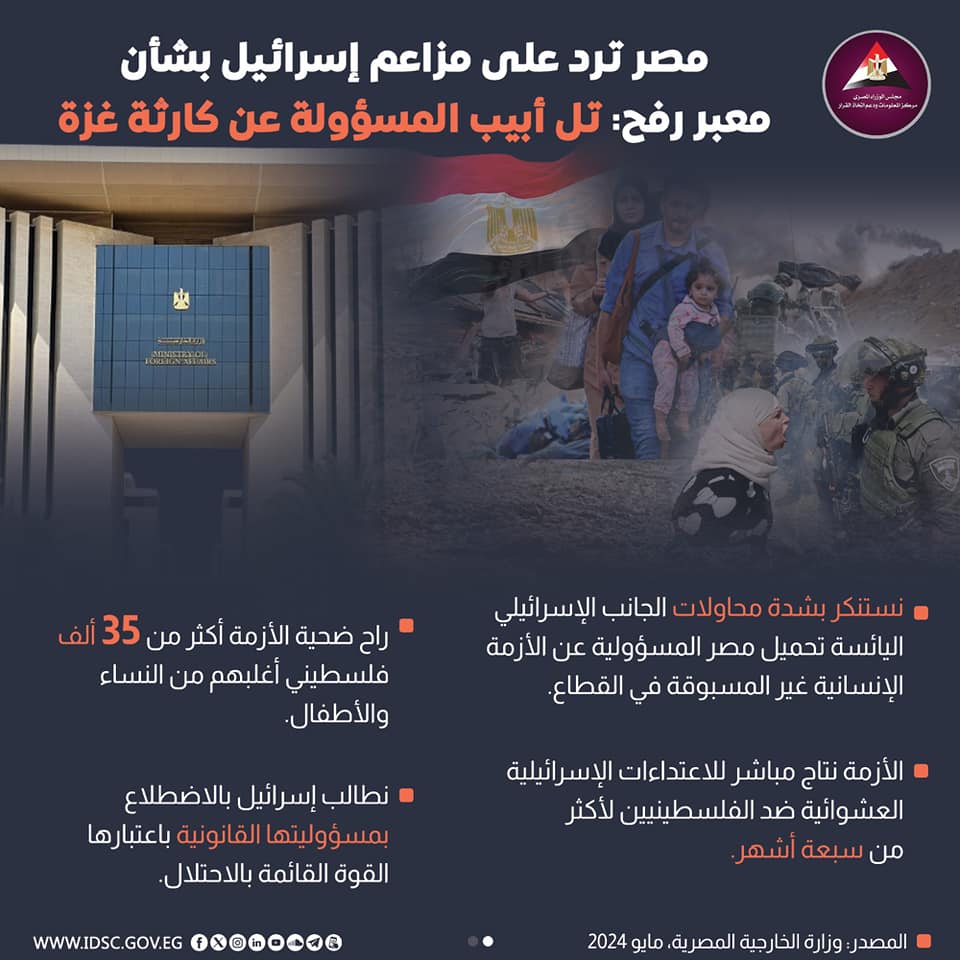 مصر ترد على مزاعم إسرائيل بشأن معبر رفح (إنفوجراف)