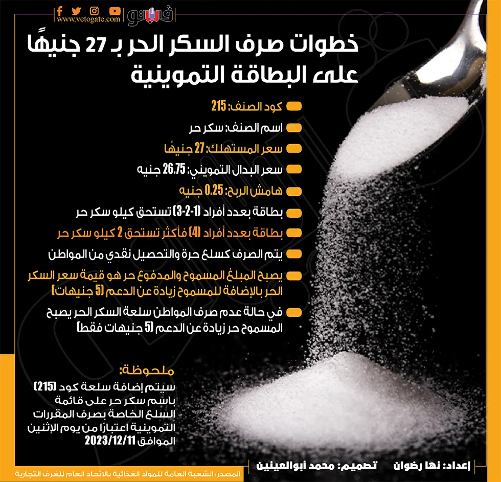 وتابعوا: أن دارت الكثير من الأقاويل بشأن إلغاء تسلم السكر الحر للبدالين التموينين، خاصة مع توفير السكر في الأسواق بسعر 35 جنيهًا، وهو سعر مقارب لسعر السكر الحر على البطاقات التموينية المحدد بـ 27 جنيهًا.