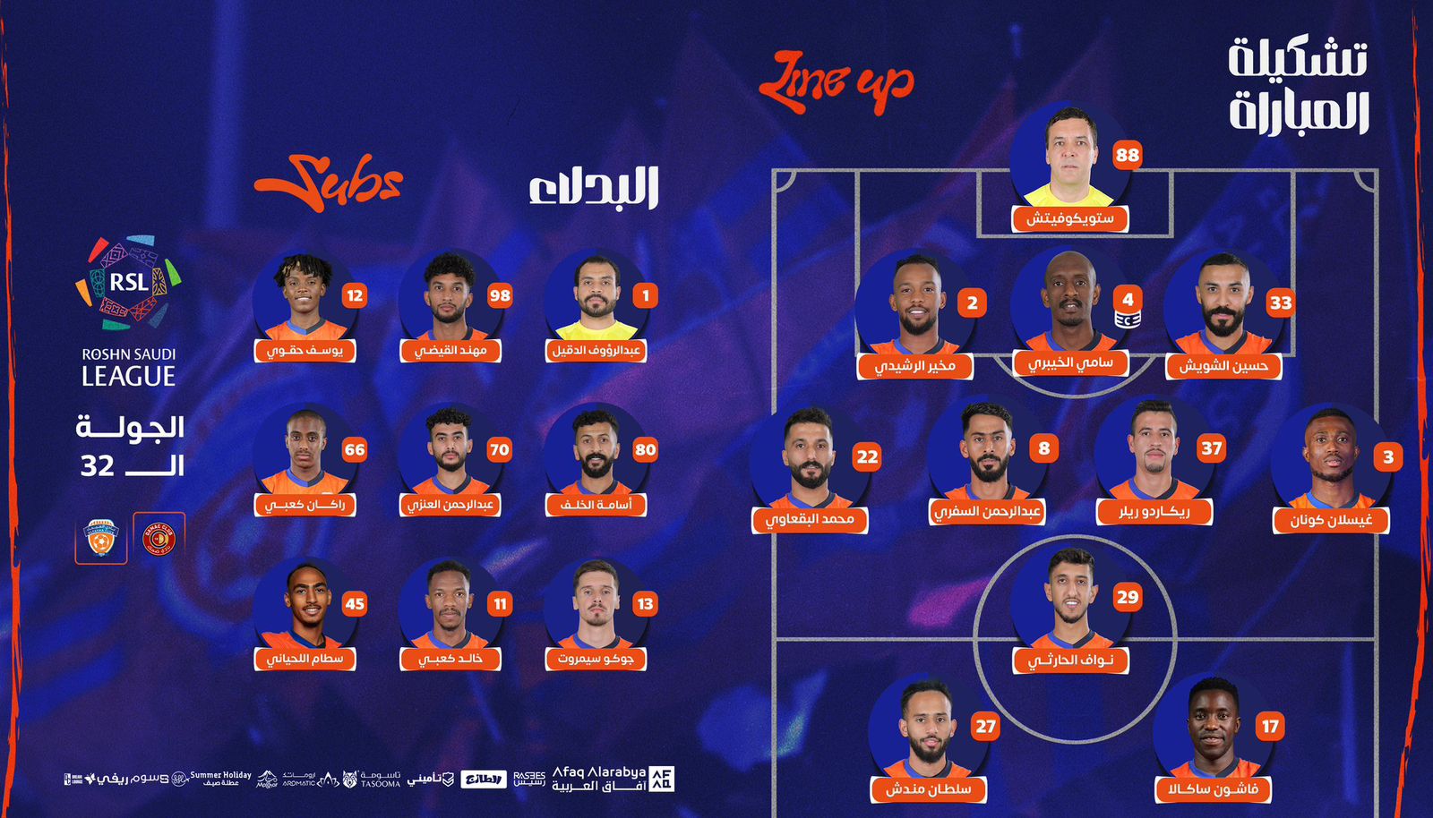 ويحتل فريق الفيحاء المركز السابع في جدول ترتيب دوري روشن السعودي برصيد 43 نقطة، فيما يحتل فريق ضمك المركز العاشر برصيد 40 نقطة.