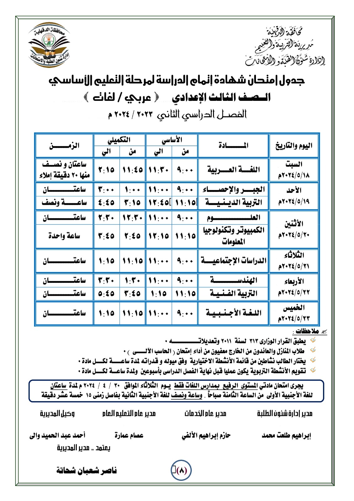 رفع درجة الاستعدادات لامتحانات الشهادة الإعدادية