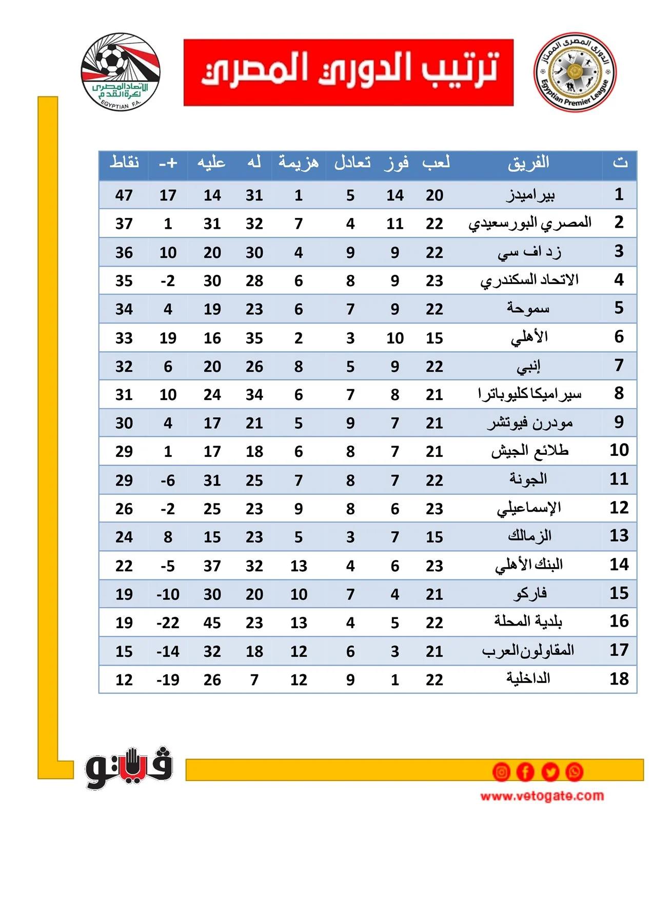 1- بيراميدز 47 نقطة