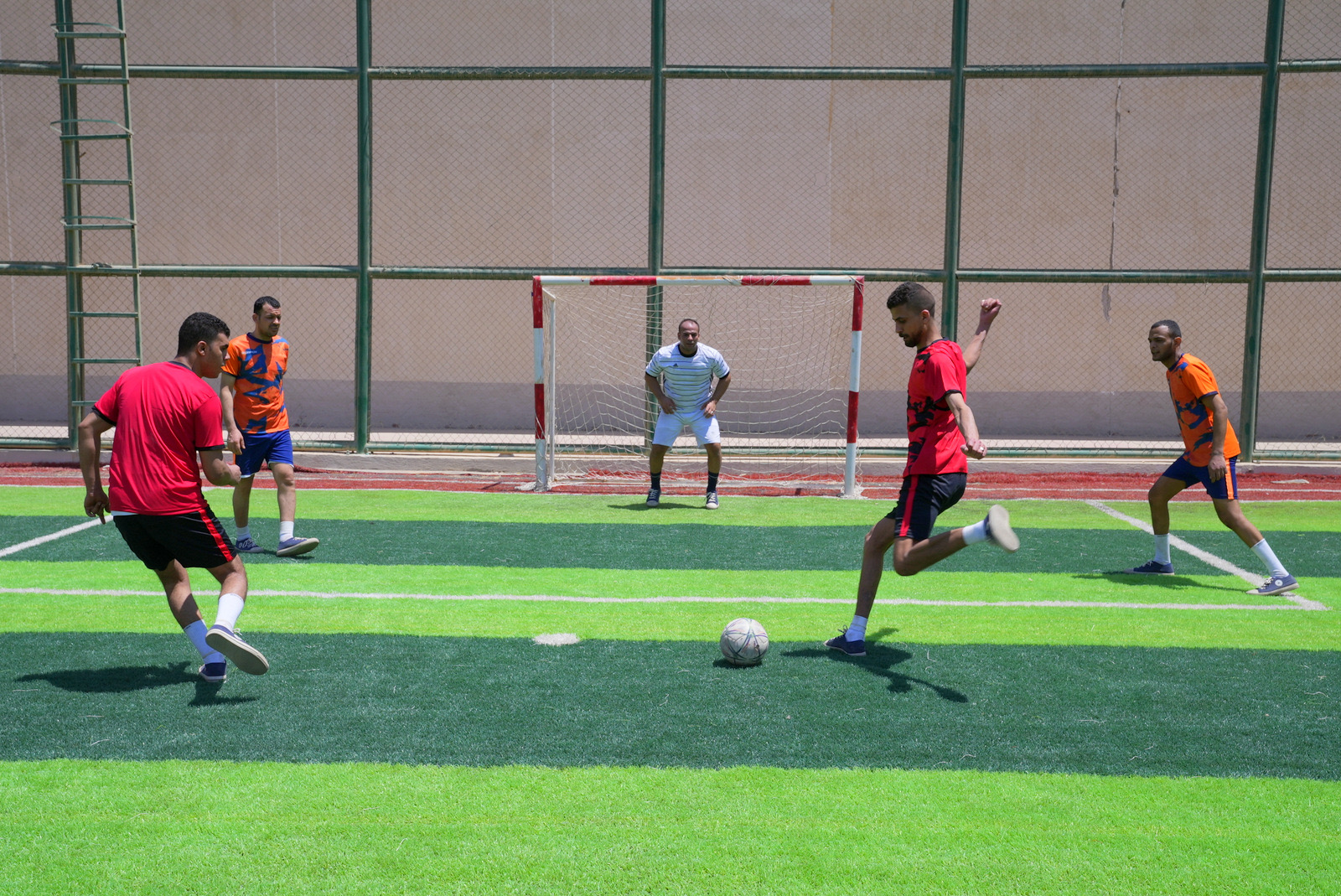 النزلاء يلعبون كرة قدم في مركز 15 مايو