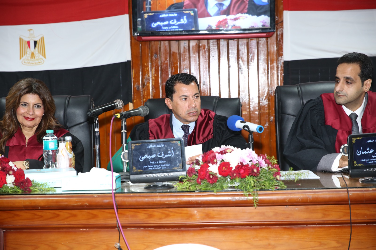 وزير الرياضة يترأس لجنة مناقشة رسالة دكتوراه بآداب المنصورة (صور)