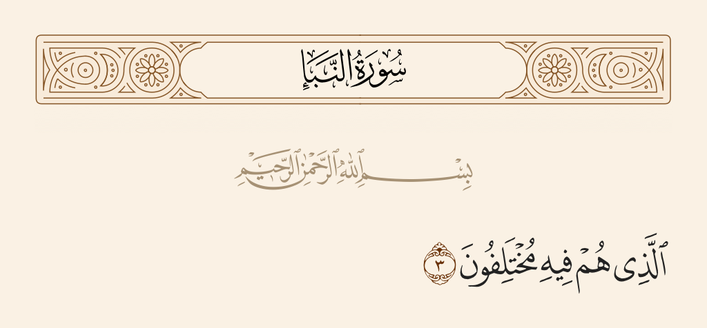 قال تعالى: «عَمَّ يَتَساءَلُونَ (١) عَنِ النَّبَإِ الْعَظِيمِ (٢) الَّذِي هُمْ فِيهِ مُخْتَلِفُونَ (٣)».