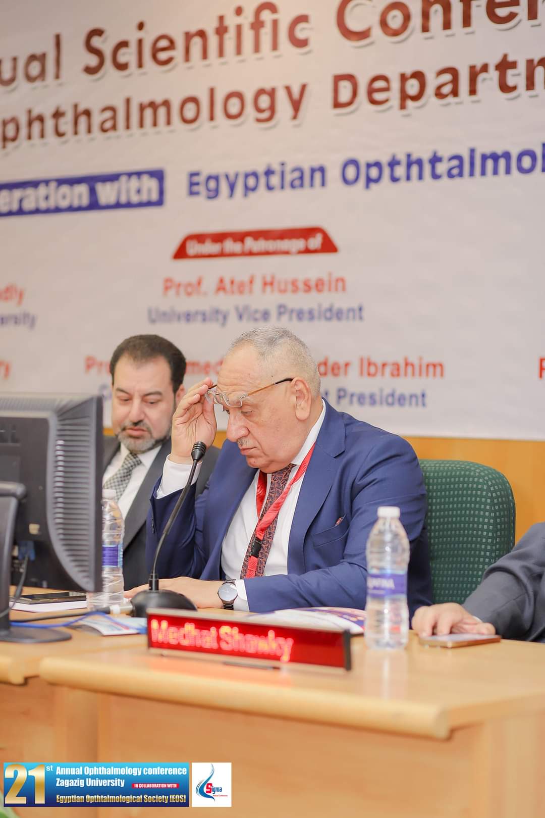 وكذلك اللواء د.أحمد العشرى نائبًا عن الجمعية الرمدية المصرية، ود.مدحت شوقى مقرر المؤتمر ولفيف من أعضاء هيئة التدريس والأطباء بقسم طب وجراحة العيون بجامعه الزقازيق والجامعات المصرية ووزارة الصحة والتأمين الصحي والأكاديمية الطبية العسكرية.