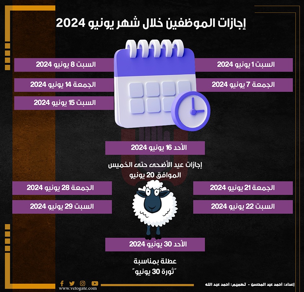 إجازات الموظفين خلال شهر يونيو 2024 (إنفوجراف) الثلاثاء 21/مايو/2024 - 11:23 ص 5/21/2024 11:23:09 AM إجازات الموظفين في يونيو 2024، فيتو أحمد عبدالمحسن شارك طباعة 18 حجم الخط شارك طباعة عيد الأضحى ثورة 30 يونيو اجازات الموظفين اجازات الموظف شهر يونيو