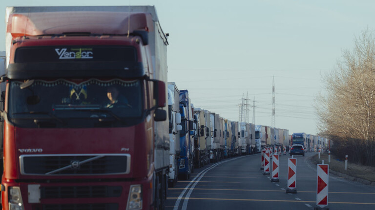 سائقو الشاحنات ينظمون احتجاجا كبيرا في أوكرانيا لهذا السبب