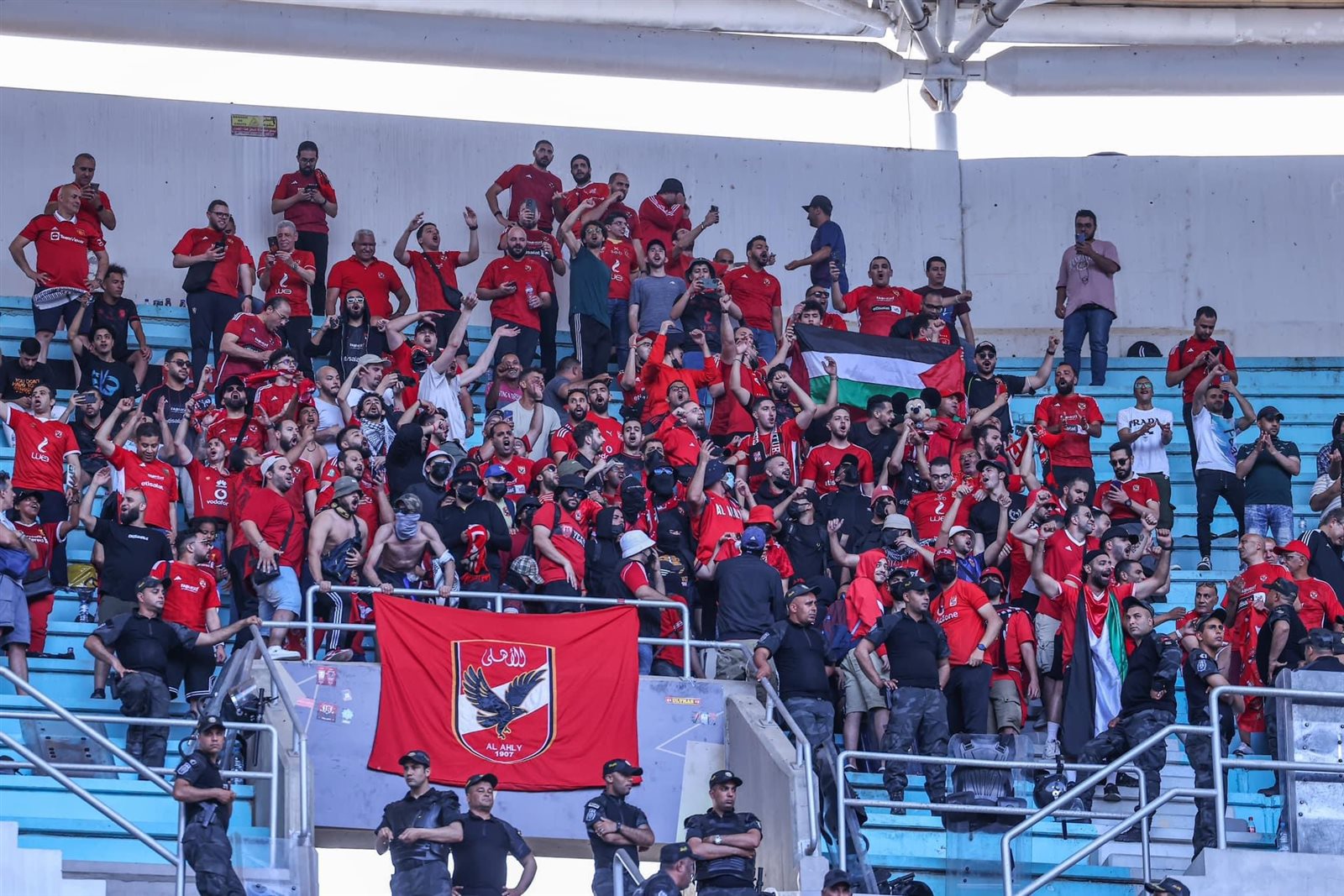 قامت جماهير النادي الأهلي برفع “تيفو” يحمل شعار لدعم الفريق في مباراته أمام الترجي التونسي في ذهاب نهائي دوري أبطال أفريقيا المقرر، المقامة اليوم السبت على ملعب رادس.
