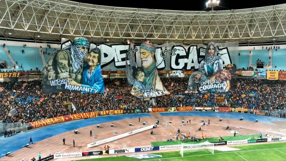 أرض حرة في عالم محتل، تيفو جماهير الترجي لدعم فلسطين (صور)