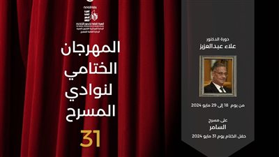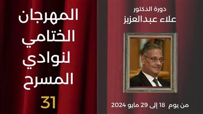 المهرجان الختامي لنوادي المسرح تنظمه الإدارة العامة للمسرح بإشراف الإدارة المركزية للشؤون الفنية، ويشارك هذا الموسم 24 عرضًا مسرحيًّا تقدم مجانا للجمهور خلال الفترة من 18 إلى 31 مايو الحالي، بمسرحي السامر وقصر ثقافة روض الفرج، ويصدر عنه نشرة يومية بالإضافة لندوات تعقب العروض يشارك بها نخبة من النقاد والمسرحيين.