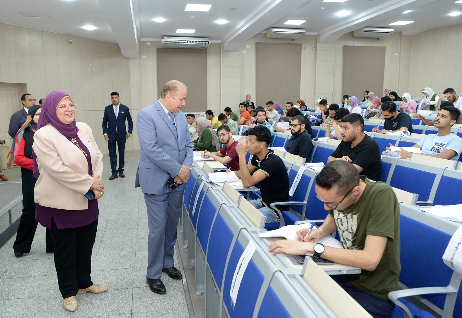واستطلع رئيس الجامعة خلال الجولة، آراء الطلاب حول طبيعة الامتحانات ومدى صعوبتها وسؤالهم عن أي مشكلات أثناء عقد الامتحانات.