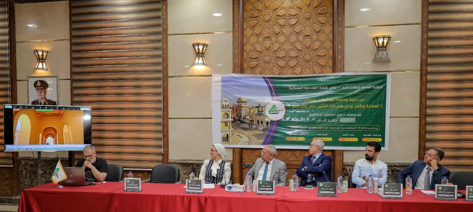 نظمت شعبة الهندسة المعمارية ندوة بعنوان "العمارة والفن ودورهما في التأثير على المجتمع"، تحدث فيها مصمم الديكور أحمد فايز- منفذ ديكور مسلسل "الحشاشين" الذي تم عرضه في شهر رمضان الماضي، وكيف تم اختيار الديكور وآليات تنفيذه، وذلك بحضور المهندس طارق النبراوي- نقيب المهندسين.